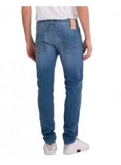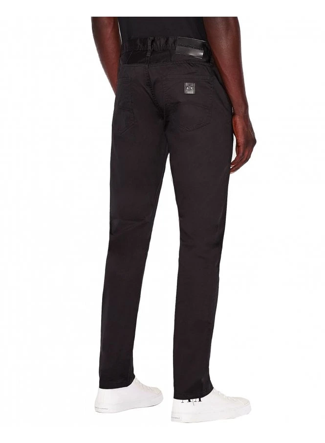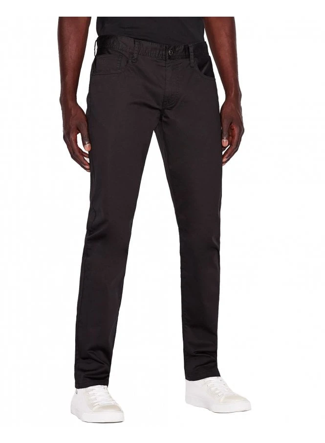 Armani Exchange slim fit jean featuring stretch, 5 pockets, metal branding.