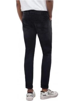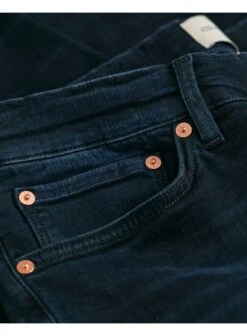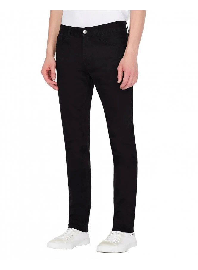 Armani Exchange slim fit jean featuring stretch, 5 pockets, metal branding.