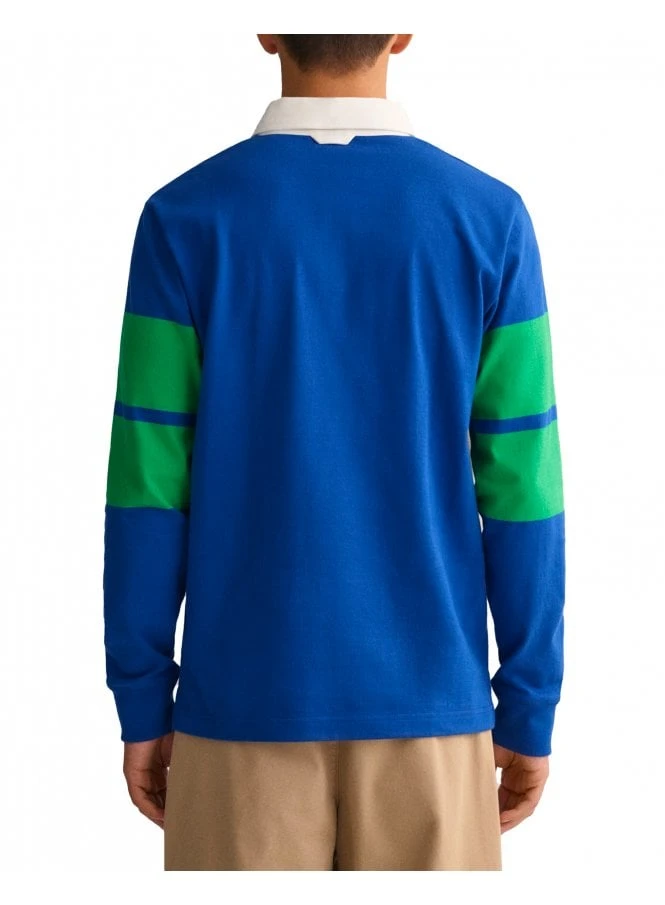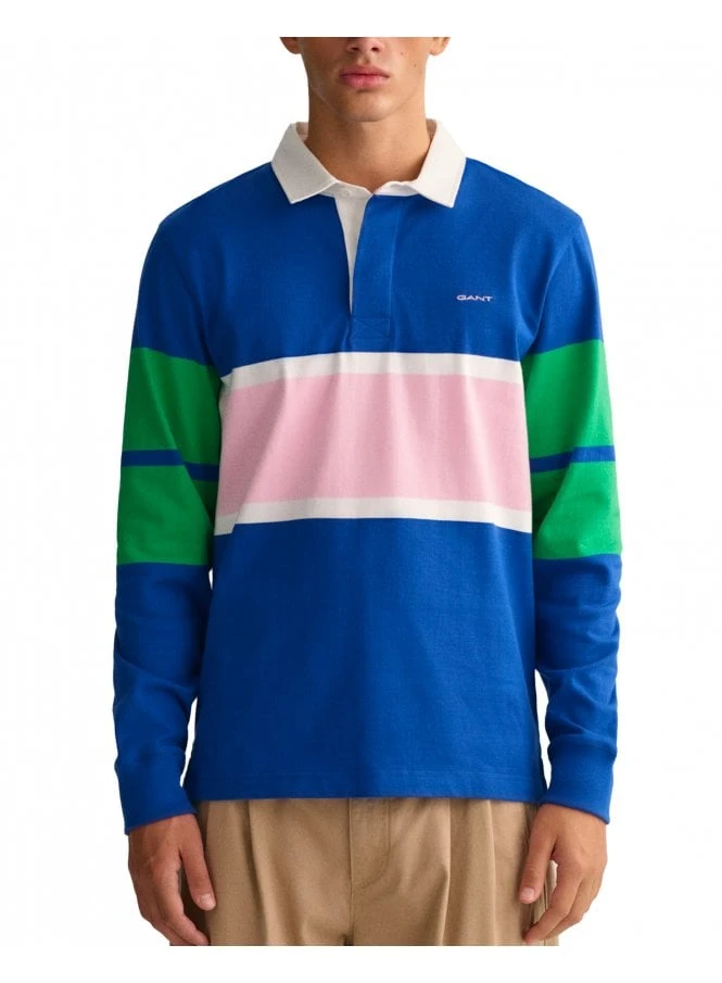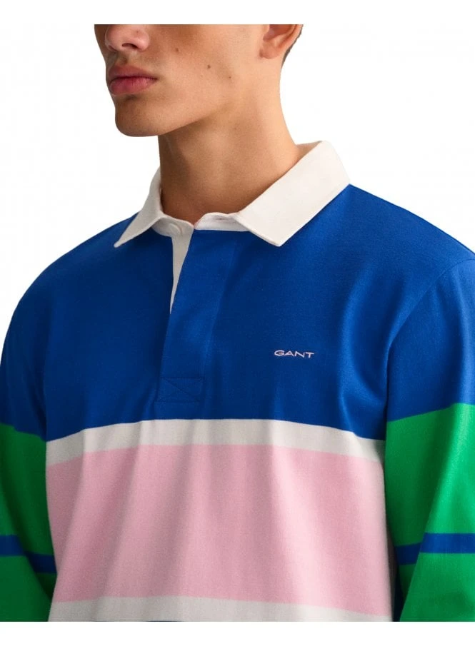 A colorful and contemporary twist on the traditional rugby shirt, this rugger is cut from 100% cotton with a twill collar and valueed placket. Sporting a regular fit, it is patterned with yarn-dyed stripes across the body and sleeves and features side hem slits and our signature locker loop at the back.