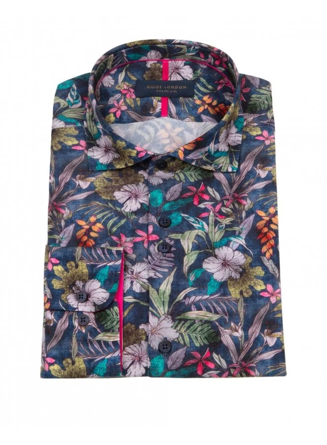 Introducing our latest long sleeve shirt crafted entirely from luxurious tencel fabric, ensuring unparalleled comfort and breathability. Embrace the vibrancy of nature with our multicoloured floral pattern set against a deep navy background, adding a touch of elegance to your wardrobe. Perfect for both casual outings and formal occasions, this shirt offers versatility and style in equal measure.Â