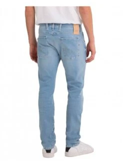 Slim fit jeans with regular waist and tapered leg for a comfort fit. With an authentic look, the garment is made of 11,5 oz 360° PET recycled black overdyed Hyperflex reform blue stretch cotton denim with a stonewashed medium dark wash tone. The five pocket item is characterized by the enzyme treatment which creates contrasting colours on used areas. Zip and value fly.
